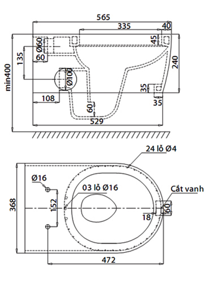Thông số kỹ thuật Bồn cầu két nước âm tường Viglacera V55